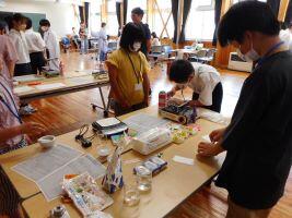 8月20日(日) 2年生が主導のCHIKUMA STEAM PARK!!第1回目が開催されました。科学班の生徒たちが10のブースに分かれ、キャンドル作りやペットボトルロケット、サイフォンの原理など、科学の不思議を紹介しました。親子で参加してくださった皆さんも多く「お母さんも勉強になったよ。」と楽しんでくださいました。今回は、スタンプカードを用意し、全部のブースを回るとある言葉が出来上がるという工夫もありました。参加した小学生からも「スタンプラリー式で楽しかった。」「次回もぜひやって欲しい」という声があがっていました。