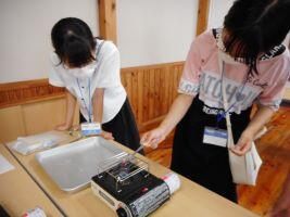 8月2日(水)高校生に声をかけていただき、夏休み中、上徳間の「かみとくま食堂」でボランティアをしている生徒もいます。この日は1年生4名、2年生4名が参加をし、子どもたちと遊んだり、バーベキューをしたりしました。9日、16日はかき氷やポップコーンを作ったり、子どもたちと一緒に宿題をしたりするそうです。みんな楽しみながら活動をしていました。