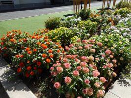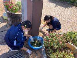 最後に、環境委員会の活動を紹介します。夏休み前に、屋代高校前駅の花壇の様子を紹介しました。夏休み中も遠方から花の水やりに登校してくれた環境委員のみなさん。昨日の公開授業もたくさんの花で来校者のみなさんをお迎えすることができました。今日も、暑い中みんなで草取りをしていました。ありがとうございます。
