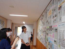 8月24日(木)現在、中学棟のいたるところに1年生の作った「スクラップ新聞」が飾ってあります。各自が興味をもった新聞の記事を切り抜き集め、それについての自分の考えを書き込んだものです。生徒たちは、「読み手が読みやすいように書いた」「色分けをして、見た目もきれいなようにした」と力作ぞろいです。今週末の授業公開でぜひご覧ください。