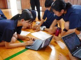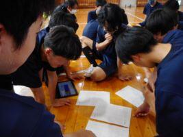 8月30日(木)3年生の体育で、バレーボールをしています。「三段攻撃(レシーブ・トス・アタック)を成功させるために、レシーブにおいて大切なこと」について分析シートや撮影した映像をもとに考えました(こういう時にもICTが役に立っています)。実際にプレーした後「レシーブはオーバー(ハンド)で受けた方がよかった」「なるべくネット際に返すのがいい」「でも勢いよく返しちゃうんだよね」などグループで話をしていました。分析をもとにチームで協力をしながら三段攻撃、成功させたら気持ちいいだろうなぁ。