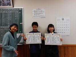 11月9日(木)本日も嬉しいニュースがありました。Oさん、Yさん、Tさんの三人が、全日本通信珠算競技大会長野県大会団体総合競技中学校の部で準優勝をしました。珠算の団体戦は、3人1チームで「かけ算」「割り算」「見取り算」「暗算」の4種目を行い、合計点を競うそうです。3人とも、年長さんからそろばんを続けているそうで、長く続けてきた理由を聞くと「できたら嬉しい」「級や段を取ったら嬉しい」と達成感を得られるところが楽しいと言っていました。1つのことを長く続けることはそう簡単にできるものではありません。継続できること、それ自体が素晴らしい力だと思います。