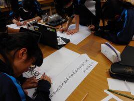11月13日(月)2年生が生徒会引継ぎに向けた準備をしています。A組では、令和6年度の生徒会活動としてやってみたいものをクラスで考えていました。「図書館の利用者数を増やすためにいくつか本を中学棟に持ってきたらどうか」「学年間の交流を増やす活動をしたい」「掃除を学年縦割りのグループにしたらよいのでは」「電車マナーについて皆で考えたい」など、日常活動をよりよくするための活動や、特別活動についてアイディアを出し合っていました。B組では、生徒会長候補のアピールポイントを皆で出し合い応援演説の準備をしていました。「人をやる気にさせてくれる」「何事にも一生懸命」「発想力、行動力がある」とたくさんのアピールポイントがでていました。両クラスとも皆で「生徒会を盛り上げていこう」という雰囲気が伝わってきて、大変頼もしかったです。
