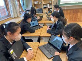 11月16日(木)「知の甲子園」の様子を紹介します。本校では、ジュニアアチーブメントジャパン主催の「知の甲子園」に開校当初から参加しています。過去には全国優勝を果たした生徒もおり、先輩から後輩へ繋がれてきた取り組みです。本日は、来週20日から始まる予選に向けて校内練習会を行いました。この「知の甲子園」ではMESEというプログラムを使用し、架空の会社を経営していきます。生徒は、自分の会社だけでなく、他社の経営を研究したり市場を予想したりして製品の価格や宣伝広告費、研究開発費にどのくらいの力を注ぐか決定していきます。悩んだ末の結果が思い通りにいくとペアの仲間と手を取り合って喜ぶ姿も見られました。様々な教科で培ってきた力と先輩から引き継いだ伝統を合わせて予選を勝ち上がり全国大会出場を目指して頑張ります。