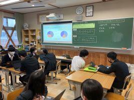 11月15日(水)3年生の社会科では「資源・エネルギー問題」の単元の中で「電気でSDGsを達成できないか」に注目して学習を進めています。本時は、「2030年、日本のエネルギーミックスはどうあるべきか?」という学習問題について、各自が考えたオリジナルのエネルギーミックスの円グラフを説明し、エネルギーミックスを考える上で大切なことを探りました。生徒からは、「安定性」「安全性」「現実性」「持続可能か」などたくさんの大切にしたい視点が出てきました。授業後半では、政府が目標として示しているエネルギーミックスを自分の考えたエネルギーミックスと比べたり、自分たちが見つけた大切なことの視点から見て政府の目標はどうか検討したりしました。以下は生徒のふり返りです。