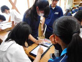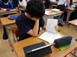 7月10日(水)今年度2回目のオンライン授業がありました。社会科では、上田市塩田平の「鎌倉街道」からの中継でした。私たちが普段使っている道も歴史と深く関わっていることがあり、その痕跡を地名や跡地から探りました。また、英語では、松本城に訪れている外国の方々へ質問をしたり、聞き取れた内容をまとめたりしました。先生方が毎回オンライン授業だからこそできる授業を展開してくれています。