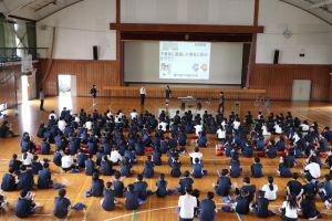 7月8日(月)安全委員会の企画である防犯週間が本日より始まりました。本日は、生徒の希望から実現した、警察の方による安全講話がありました。長野県内で実際に起きた事案や注意点を教えていただいたり、登下校時に不審者にあった際にとる体勢を実演を通して教えていただいたりしました。生徒からは「車に乗せられないようにするには」「スマホを持っていない時の対応は」などの質問があり、委員長のKさんは「電車やバスでも声をかけられる事案が多いことを知った。周りに人がいるからと言って安心してはいけないと思った。」と感想を述べてくれました。通学時の安全確保について改めて考える機会となりました。