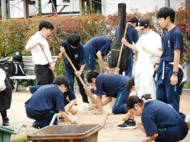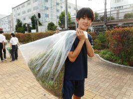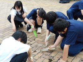 7月16日(火)三連休前、環境委員会・清掃委員会・福祉委員会・校風委員会のコラボ企画である「駅の清掃」を行いました。自主的に参加をした生徒を合わせると、約50名程の生徒と職員が集まり、屋代高校前駅の清掃を行いました。生徒は、取りにくいタイルの間の草も、丁寧に取り、蜘蛛の巣を一生懸命払いました。駅周辺の広い範囲の掃除でしたが、できる範囲、一生懸命掃除をし、集めた草は袋いっぱいになりました。奉仕活動も気持ちよくできる姿、立派です。