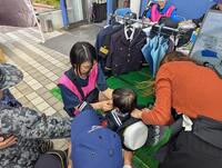 消防車や救急車に集まった子どもたちに隊員服を着せるのを手伝ったり、マスコットたち補助をしたりするなど、人手の足りないブースに呼ばれて仕事を手伝いました。