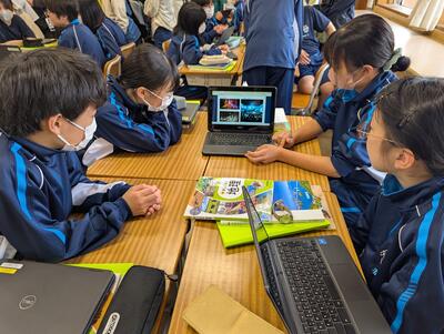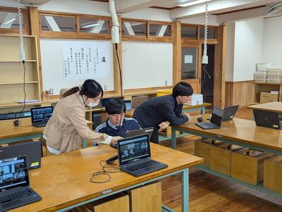 また、英語科では、1年生と2年生の遠隔交流授業が行われ、1年生は2年生に対して自己紹介し、2年生は1年生に対して千曲市の見どころを紹介するなど、それぞれの目的・場面・状況に沿って伝え合う活動を行いました。