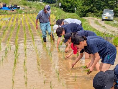 作業はおよそ2時間ほどで終わりましたが、参加した生徒たちは、大きな機械が入れない場所だからこそ手作業で行うことの意味に納得したり、棚田保全のために主催者が人手を確保する工夫をしていることについて着目したりするなど、学びの多い一日となりました。