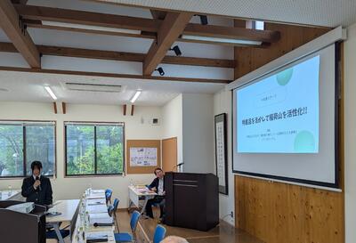 「特産品を生かして稲荷山を活性化」をテーマに、1年次に探究した稲荷山重要伝統的建造物群と、2年次の東海研修旅行で訪れた名古屋市の有松重要伝統的建造物群との比較から、稲荷山地区の活性化のために考えられることについて発表しました。
