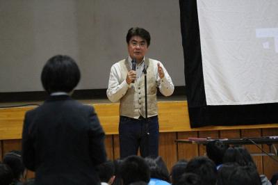 中高合同でSSHサイエンスフォーラムが開催されました。今回は長島孝行先生による「あっ、その手があったかものづくり」でした。生物から学ぶことは多く、私たちに多角的な視点を示してくれました。