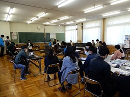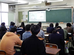 今年度は、コロナ感染症予防対策のため、 Zoom を用いて発表会場(会議室)と各 HR 教室をつないでの開催となりました。