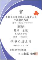 9月1日、2日に上田市自然運動公園プールで行われた新人戦水泳競技長野県大会の結果報告です。