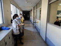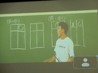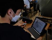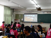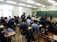 昼ご飯を食べながら、電子黒板を使って次の対戦相手の分析をしているクラスもありました。