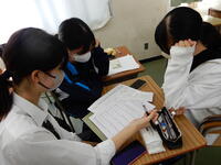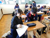生徒手帳の生徒会会則や、タブレットで配布された資料を見ながら演説を聞き、クラスメートの演説に大きな拍手を送ったりしていました。