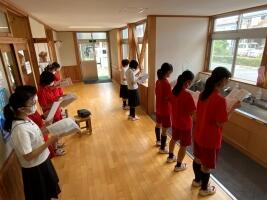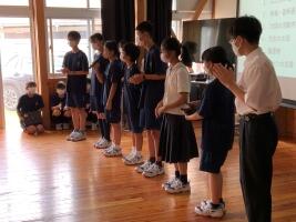 〇7月25日(月) 6時間目は各学年総合的な学習の時間。1学年では9月の宿泊学習に向けての学年集会が行われ、係ごとに必要なことを発表していました。生徒主体に取り組んでいる様子が伺える集会でした。3学年では、10周年記念式典の歌練習が始まっておりパートごと前向きに取り組んでいました。場所がなく、廊下も使って密を回避しながら一生懸命高い音と勝負していました。あと二日で夏休み。暑い中ですが、みんなよく頑張っています!
