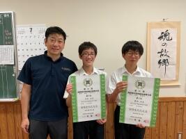 中体連県大会で第6位に入賞したバタフライのOJさん、自由形のOTさんへの表彰を行いました。力一杯泳いでいた姿がとても大きく見えたことを伝えました。おめでとうございます!