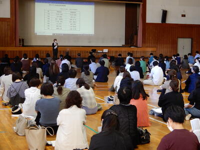 本日は、入学時にお決めいただいたPTA役員の皆さんのご紹介、学年主任からこれまでの生徒諸君の様子、キャリア主任から進路指導について、続いて2年時からの文理選択についての説明をしました。全体会の後、各クラスに分かれて学級PTAをしました。