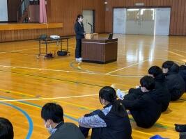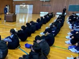 〇1月6日(金) 後期後半の初日を迎えました。1校時は、新年中学生集会で1年のTMさん、2年のMKさん、3年のMMさんが代表で話をしてくれました。3か月後に学年がひとつ上がることに対する不安や、願いや、決意をそれぞれの言葉で、その心根を伝えてくれました。人前で発表するだけでも勇気のいることなのに、さらに心根をも言葉にしてくれた姿はとてもかっこよく映りました!自分の力を内から外へ表現した姿でした。
