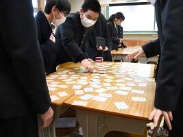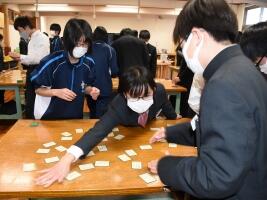 2校時には、全校百人一首大会を行いました。2学年のプロジェクトチームがこの会を企画し、運営してくれました。急な企画でしたが、多くの生徒の協力で1時間、全校で楽しむことができました。プロジェクトチームのみなさん、輝いてましたよ。やってみよう!と名乗りを上げて企画運営にかかわってくれたことが本当に素晴らしかった。これも立派な自分の力を、内から外へ!ですね。ありがとうございました。