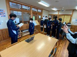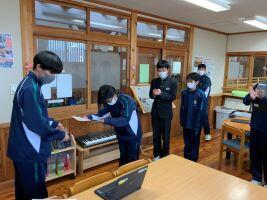 〇1月6日(木) 年末年始休業最終日。校舎に「こんにちは」「ありがとうございます」とあいさつ練習の大きな声が響き渡ります。吹奏楽班の皆さんが練習のはじめに取り入れているようです。顧問のK先生に尋ねると、「吹奏楽班は表現をする班なので・・・」。おっしゃる通りですね。内から外へ発信する大切さがきっと鍛えられて、演奏にもつながりそうですね。体育館で練習しているハンド班をのぞいてみると、男子も女子も気合の入った練習が行われています。男子からは、年末の大会の報告を受けました。強いチームが集まった大会で「負けなかった」ことは大いに収穫。ひと冬越えた春が楽しみです。
