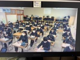 〇2月16日(水)1年と3年の分散登校日でした。定期考査に向けての学習や、総合文化発表会に向けての発表の準備など、対面で先生や生徒同士で相談ができる利点を上手に使いながら一日を過ごしました。英語では、チャット機能を使ってパフォーマンステストを実施しました。この方法もだいぶ慣れてきましたか?1年生のLHRでは、総合発表会の発表を撮影しました。配信に使うほか本番の練習にもなりましたね。3年生では、中学生として臨む最後の定期考査に向けた学習をしました。「高校生になるんだ」という意気込みが背中から伝わってきました。今日の頑張りを自分で感じられる学校、そんな毎日にしたいですね。
