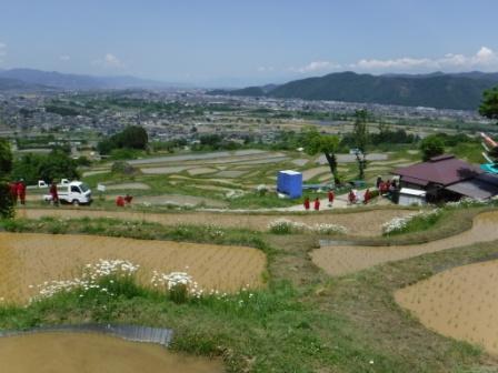 中学2年生は、4月から地域探索学習で稲荷山エリア・あんずの里エリア・温泉エリア・棚田エリアの4つに分かれて学習を進めてきました。その中で、7月24日、25日に行われるイングリッシュキャンプで10名の外国人講師の方に英語で紹介する計画を立てています。そこで、7月4日(水)に各地区へ出かけ、イングリッシュキャンプへ向けた準備を行いました。