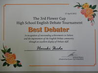 フラワーカップディベート大会 投稿日時 : 2022/04/20 屋代高HP担当 4月20日 第3回フラワーカップ高校生英語ディベート大会 4月17日にオンラインで開催された標記大会において、本校英語班の高校2年生 池田春樹君が、 ベストディベータ―として表彰されました。 全国から40校ほどがチームで参加して、競い合った中での受賞です。 おめでとうございます。今後ますますの活躍を期待しています。