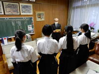 スポーツデータ解析コンペティションー2021-賞状伝達式 投稿日時 : 2022/04/19 屋代高HP担当 4月19日 中高生・スポーツデータ解析コンペティションー2021- 最優秀賞 自由部門 「データ解析を通じた『弓道』の科学的分析 ~和弓の仕組みの科学的分析~」 武田美波・村田歩佳・宮田葵・八田京子 標記のように、最優秀賞を受賞した4名に、学校長から賞状が伝達されました。 班結成後、道場で練習していたところを抜けてきてもらいましたが、写真の様子が 研究内容と合致して一層雰囲気が出ました。