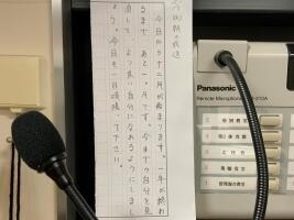 〇12月1日(水) 朝の放送が聞こえてきました。とても気持ちの良い話し方で12月の初日にふさわしい話の内容だったので、誰がやっているのだろうと思い、放送機器のある職員室へとんで行きました。担当していたのは、2年生のTさん。話した内容の原稿があれば見せて、と聞いてみると、「その場で考えて話した」とのこと。余計に感激をして「さすがだね。」と声をかけました。しばらくして、Tさんが副校長室に顔を出しました。「放送の言葉を書いてきましたが、いりますか?」…泣けます。ありがとう。 このように心が温かく感じることが、今日はまだまだありました。お昼は校内安全委員長のMさんが、電車通学で気を付けたい点を放送で早速連絡してくれました。お弁当の片付けでは、A先生がコンテナ室にいて、子供たちに返却の様子をそっと見守り、そっと気を付ける点を促していました。掃除のない水曜日でしたので、職員室や講義室の灯油の心配をしてくれたO先生は副校長室にも灯油を持ってきてくれました。多くの生徒の皆さんや先生方の心根に触れることができた1日でした。よい12月になりそうです。